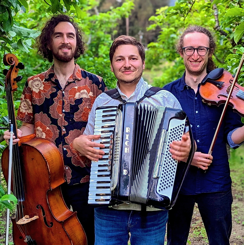 Founded in 2018, Baymele — “little tree” in Yiddish — is a klezmer and Eastern European folk trio rooted in the San Francisco Bay Area on unceded Ohlone land. Avid ethnographic researchers, they perform newly rediscovered gems from Ashkenazi Jewish, Polish, Romanian, Ukrainian, and Hungarian folk music traditions, alongside original compositions.