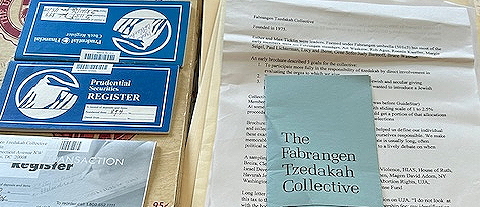 Recently, a full archive of documents from the Fabrangen Tzedakah Collective were donated to the Capital Jewish Museum. The materials include notebooks, folders with Collective minutes, distributions and other materials, and checkbook registers. The Fabrangen Tzedakah Collective was formed in 1975 by members and friends of Fabrangen in Washington DC. Fifty years later, the Collective continues, having made over 95 allocations worth more than $2 million.