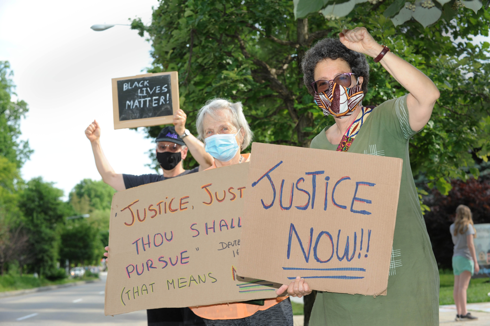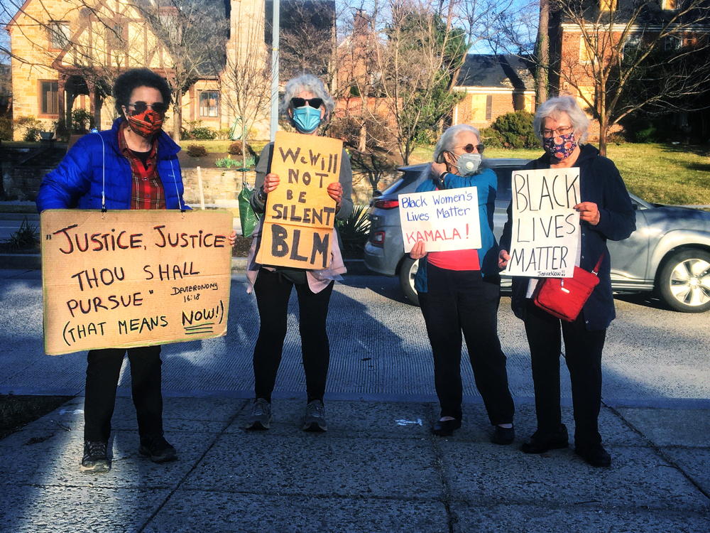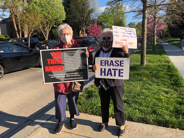 Fabrangen participated for several years in the 16th Street Vigil Against Racism. Every week, beginning in June, 2020, Fabrangeners joined other faith communities to stand and hold signs to remind ourselves and those driving by that discrimination/violence against any group is discrimination/violence against all of us.